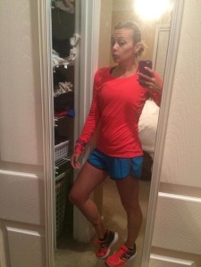 Also, it was going to be cold. Literally freezing. So I slept in a little and then pulled my act together. I had a rough route idea and took a minute to map it out. I had some wardrobe dilemmas — always happens when the weather changes drastically. I left the house in capris, tank, long sleeve, ear warmer and gloves. But I had packed arm warmers, shorts and mittens. All options covered. I ended up changing to shorts since it was up to 35 degrees when I started. Gloves, no mittens (I have Reynaud’s so the switch to mittens happens early … and I wear gloves around 50-55 degrees and below). Thin long sleeve over the tank. Lots of pink! I packed two gels — root beer and plain — and got going.